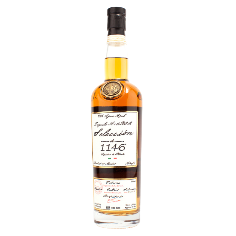 ArteNOM Seleccion de 1146 Añejo is a tequila created by Enrique Fonseca , distilled at Tequileña, S.A. de C.V. in Lowlands/El Valle, Tequila. It is cooked in Autoclave (low pressure) and crushed using a Screw Mill, Roller Mill. The type of fermentation is Closed tank, and the spirit is distilled in Pot Still. Bottled at NOM #1146 with 100% agave, it is released at 40% abv (80-proof).
