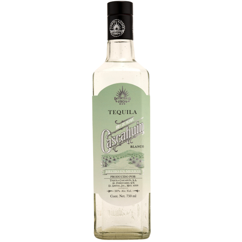 Cascahuín Blanco is a tequila created by Salvador Rosales Torres, distilled at Tequila Cascahuin, S.A. in Lowlands/El Valle, Arenal. It is cooked in Stone/Brick Ovens and crushed using a Roller Mill. The type of fermentation is Closed tank, and the spirit is distilled in Pot Still/Copper Coil. Bottled at NOM #1123 with 100% agave, it is released at 40% abv (80-proof), 38% abv (76 proof).