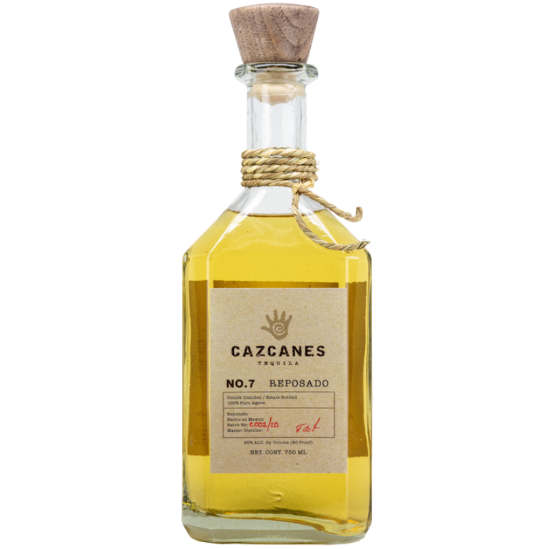 Cazcanes No. 7 Reposado is a tequila created by Francisco Jiménez, distilled at Tequilera Tap, S. De R.L. De C.V. in Lowlands/El Valle, Amatitan. It is cooked in Autoclave (low pressure) and crushed using a Roller Mill. The type of fermentation is Closed tank, and the spirit is distilled in Pot Still/Copper Coil. Bottled at NOM #1614 with 100% agave, it is released at 40% abv (80-proof).